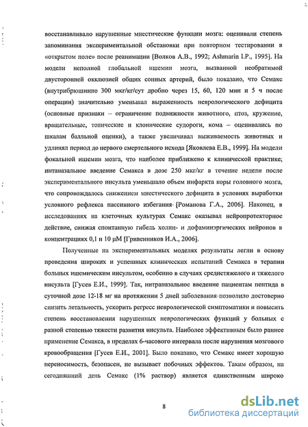 Механизмы действия пептида Семакс в ишемизированном мозге 9