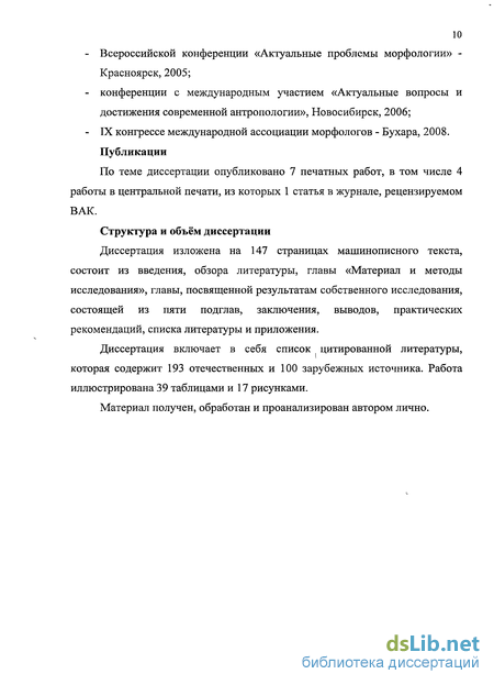 Диссертация изложена на 147 страницах машинописного текста, состоит из введения, обзора литературы, главы «Материал и методы исследования», главы, посвященной результатам собственного исследования, состоящей из пяти подглав, заключения, выводов, практических рекомендаций, списка литературы и приложения.