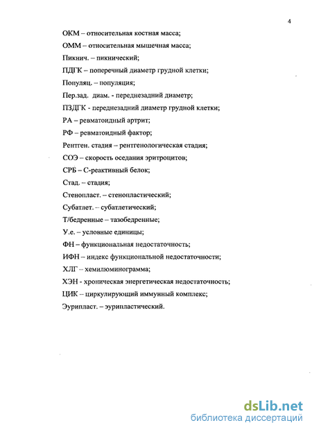 Задача индивидуального подхода к диагностике заболеваний может быть решена с помощью клинической антропологии - науки, которая сформировалась как новое научное направление, позволяющее рассматривать заболевание с позиции биологических особенностей организма (Колесников Л.Л. и соавт., 1993; Тегако Л.И., Кметинский Е.А., 2004; Година Е.З., 2006; Корнетов Н.А., 2006; Mabruc Н., Toteva V., 2005). Клиническая антропология, изучая границы индивидуально-типологической изменчивости, значительно расширяет представление о клинической вариабельности, полиморфизме и патоморфизме проявлений болезни (Корнетов Н.А., 1997; Суботялов М.А., 2002; Nagai N., Moritany Т., 2004; Monsma D.V., Malina R.M., 2005). Изучение конституциональных особенностей такого распространенного заболевания, как РА у женщин, в