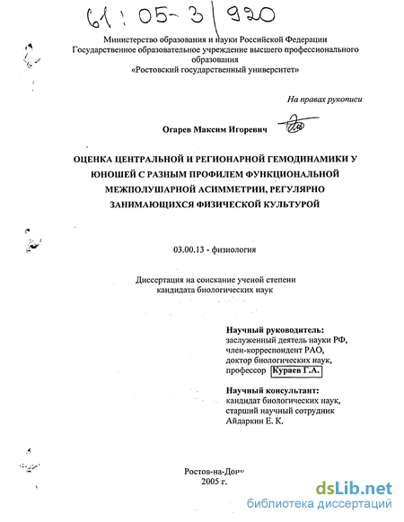 Апробация работы. Материалы диссертации докладывались и обсуждались на XXXI неделе науки биолого-почвенного факультета Ростовского государственного университета (Ростов-на-Дону, 2003); на Российской научно-практической конференции «Физическая культура, спорт и туризм: как фактор воспитания и оздоровления студенческой молодежи» (Ростов-на-Дону, 2003); на конференции «Проблемы общей биологии» (Ростов-на-Дону, 2003); на седьмой Всероссийской медико-биологической конференции молодых исследователей «Человек и его здоровье» (Санкт-Петербург, 2004).
