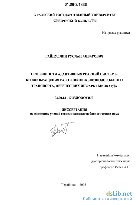 Актуальность проблемы определила выбор темы настоящего исследования: «Особенности адаптивных реакций системы кровообращения работников железнодорожного транспорта, перенесших инфаркт миокарда».