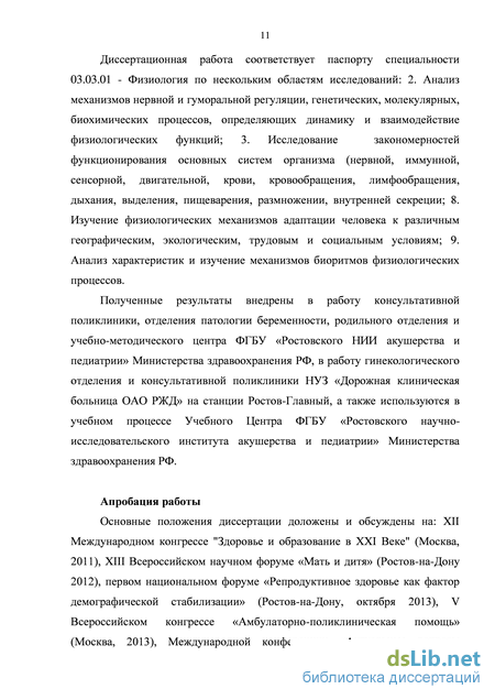 Основные положения диссертации доложены и обсуждены на: XII Международном конгрессе «Здоровье и образование в XXI Веке» (Москва, 2011); XIII Всероссийском научном форуме «Мать и дитя» (Ростов-на-Дону 2012); первом национальном форуме «Репродуктивное здоровье как фактор