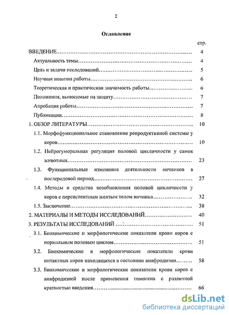 Цель и задачи исследований. Целью работы было изучение биохимических и морфологических изменений в тканях организма коров с нормальным половым циклом и после применения глугамил-триптофанового комплекса (тимоге-на) животным с анафродшией по причине прогестероновой доминанты.