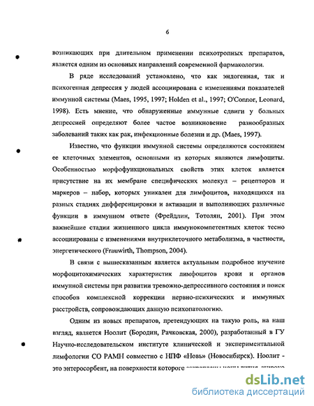 В связи с вышесказанным является актуальным подробное изучение морфоцитохимических характеристик лимфоцитов крови и органов иммунной системы при развитии тревожно-депрессивного состояния и поиск способов