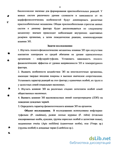 Цель исследования. Изучение этолого-физиологических эффектов, вызываемых электрическими полями низкой частоты (ЭП) у живых систем различного уровня сложности и морфо-функциональной организации.