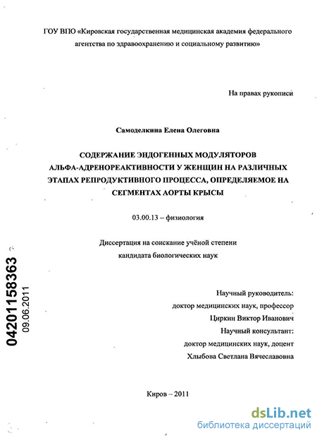 Внедрение. Результаты работы используются в учебном процессе на кафедрах нормальной физиологии и акушерства и гинекологии Кировской ГМА и на кафедре биологии Вятского государственного гуманитарного университета.