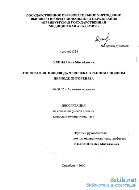 1. Топография пищевода человека в раннем плодном периоде характеризуется своими особенностями и выраженными отличиями, присущим последующим этапам онтогенеза.