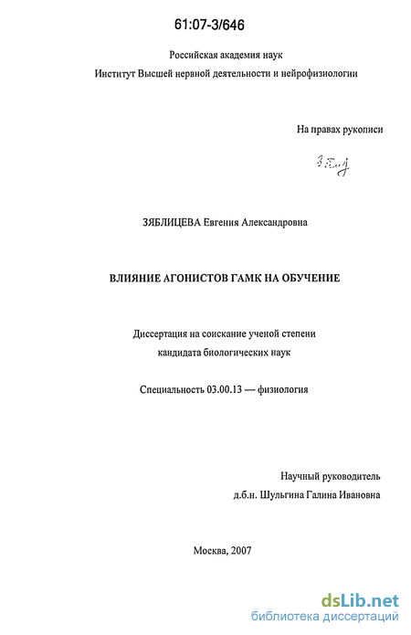 Влияние агонистов ГАМКергической нейромедиаторнои системы на процесе обучения 68
