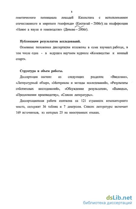 Диссертация состоит из следующих разделов: «Введение», «Литературный обзор», «Материалы и методы исследований», «Результаты собственных исследований», «Обсуждение результатов», «Выводы», «Предложения производству», «Список литературы».