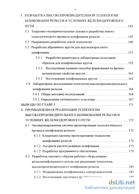 5. Разработка высокопроизводительной технологии шлифования рельсов в условиях железнодорожного пути 143