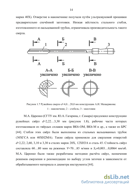 ГЛАВА 1. Современное состояние вопроса сверления глубоких и точных отверстий малых диаметров ружейными свёрлами 9