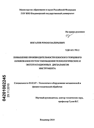 Таким образом, изучение механизма формирования дисбалансов при плоском торцовом шлифовании, их влияния на производительность процесса и разработка путей ее повышения представляется актуальным.