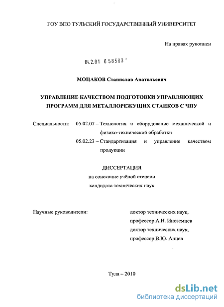 Актуальность темы. Одним из важнейших элементов информационной инфраструктуры производственного процесса изготовления машин являются управляющие программы (УП) для металлорежущих станков с числовым программным управлением (ЧПУ). От высокого качества управляющих программ зависят качество обработанных деталей, надежность технологического оборудования и эффективность производственного процесса в целом. В свою очередь, качество управляющих программ зависит от качества процесса подготовки управляющих программ для металлорежущих станков с ЧПУ (далее – процесса подготовки УП). Это обусловливает необходимость применения к совершенствованию управления качеством процесса подготовки УП достижений современного менеджмента, в том числе менеджмента качества, который предполагает широкое использование принципов процессного подхода и стандартизацию соответствующих видов деятельности.