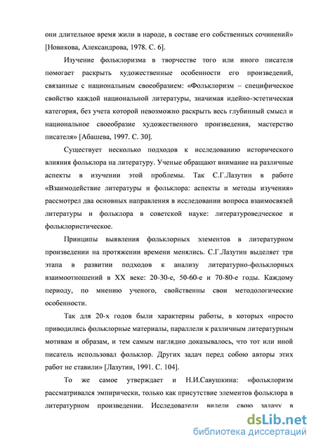 Таким подходом отличаются, например, труды М.П.Штокмара и В.В.Коржана. В них фольклоризм литературы исследуется для уяснения особенностей художественной формы как фольклорных, так и литературных произведений. Ведь «важны не только случаи дословного, буквального цитирования тех или иных фольклорных произведений, – пишет С.Г.Лазутин. – Не меньшее значение для науки о народной поэзии имеют и факты творческой переработки писателями тех или иных фольклорных произведений. Это нередко помогает нам глубже понять особенности содержания и художественной формы фольклорных жанров, подметить какие-то новые стороны и грани» [Лазутин, 1991. С. 107].