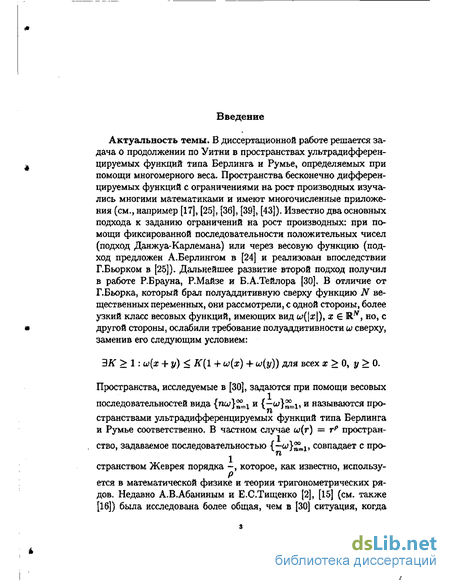 I.3. Пространства ультрадифференцируемых функций типа Берлинга и Румье. 37