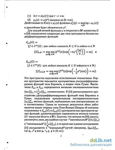 странствами ультрадифференцируемых функций типа Берлинга и Румье соответственно. В частном случае ш(г) — тр пространство, задаваемое последовательностью {—м}*, совпадает с про-