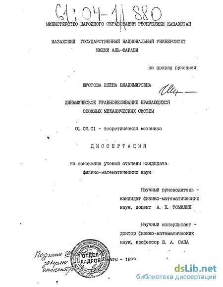 Апробация работы. Основные положения работы докладывались на научной конференции "Моделирование сложных механических сис-тем"(Ташкент, 19.91 г.), на сессии отделения физико-математических наук АН РК, посвященной проблемам развития механики и машиностроения в Казахстане (Алма-Ата, 1992 г.), на конференции-конкурсе молодых ученых и специалистов по математике и механике (Алматы, 1993 г.), на научной конференции "Механика и ее приложе-ния"(Ташкент,1993 г.),на семинаре кафедры теоретической механики КаэГУ (1993 г.)..