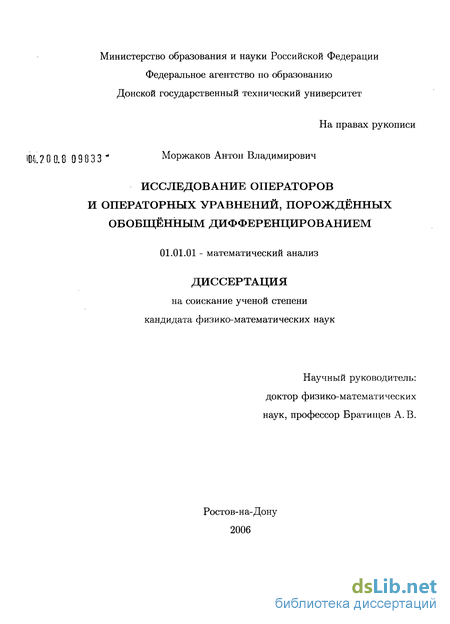 Вопросом представления оператора обобщеного диффренцирования и родственных им диагональных операторов в разное время занимались А. Ф. Леонтьев, Ю. Ф. Коробейник, Н. И. Нагнибида, С. С. Линчук, А. В. Братищев и другие математики. Изначально ООД был определён А. О. Гельфопдом и А. Ф. Леонтьевым [14] следующим образом. Пусть f(z) = X^jfcLo akzk ~ Целая функция порядка р и типа а ф 0, со, причем а^ ф 0, к ^ 0, и существует точный 1іт^_юо к~р = {crep)~p. Пусть затем