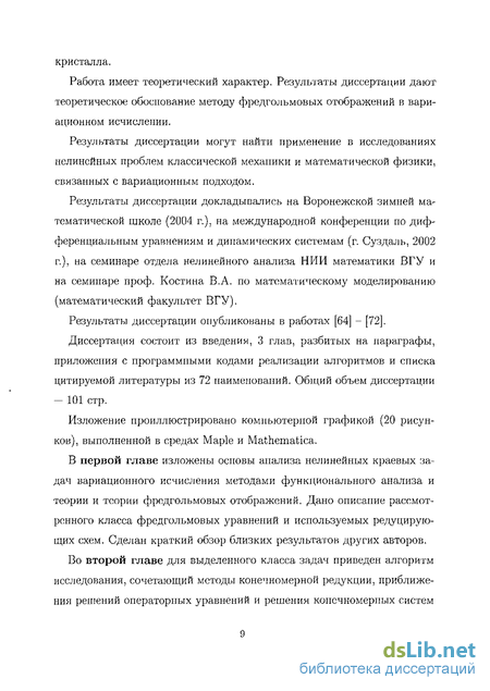 В первой главе изложены основы анализа нелинейных краевых задач вариационного исчисления методами функционального анализа и теории и теории фредгольмовых отображений. Дано описание рассмотренного класса фредгольмовых уравнений и используемых редуцирующих схем. Сделан краткий обзор близких результатов других авторов.