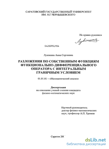 В 1975 году в статье [24] A.M. Седлецкий рассмотрел разложения функции из L\ [—7г, 7г] в ряд Фурье по системе -{К -} -1} , (8) где Л — {Anj- L-L - занумерованная в порядке неубывания модулей последовательность корней целой функции L(z) = J elztda(t), тп - кратность Хп. Порождающая мера da{t) —7Г имеет вид k(t) dt d(t) = , i±isa 0 a 1, var k(t) oo, k (тг - 0) ф 0, k (-тг + 0) ф 0. (9) ( г-1 1) Ранее в литературе этот случай не рассматривался, его исследование связано с преодолением значительных трудностей. Для таких разлолсений была доказана равномерная внутри (—тг, 7г) равносходимость и равносуммируемость с рядом Фурье по тригонометрической системе. С точки зрения спектральной теории операторов A.M. Седлецким была рассмотрена задача разложения функции из L\ [—7Г, 7г] в ряд Фурье по с.п.ф. оператора дифференцирования с граничным условием (7), в котором мера do (t) определяется (9). Далее, A.M. Седлецкий исследовал вопросы сходимости и суммируемости разложений по системе экспонент вида (8) при k(t) dt da{t) = _,ча, 0 а 1, var k(t) оо, к (а - 0) ф 0, к (-а + 0) ф 0 (а — \Ц) (см., например, [25], [26]) и при k(t)dt da{t)= 2__т 0 а 1» varfc(i) оо, к (а-0) 0, к (-а+ 0) 0 (10) (а і ) (см., например, [27], [28]). В данной работе рассматривается оператор L, порожденный функционально-дифференциальным выражением 1(у)=0у (х)+у,(1-х)+р1(х)у{х)+р2(х)у(1-х), ж є [0,1], (11) где /?2 т 1, Pj(x) Є С1 [0,1] (j = 1,2), и интегральным граничным условием і U(y) = jp(t)y(t)dt = 0, P(t) = ta{ t)a, (12) о где 0 а 1, k{t) Є С[0,1] П К[0,1] , и удовлетворяет (fc2(0) - 72й2(1)) (Л2(1) - 7 (0)) ф 0, 7 = /3- х/ 7!- (13) Оператор (11) с общим краевым условием U(у) = 0 относится к классу функционально-дифференциальных операторов с инволюцией т!)(х) = 1 — х, которая порождает оператор отражения Sy(x) = у(1 — х). Операторы, содержащие оператор отражения, имеют давнюю историю и интенсивно исследуются в настоящее время [29]-[34]. Оператор (11) возникает, в частности, и при изучении разложений по с.п.ф. интегрального оператора і Af = / А(х, t) f(t) dt, ядро А(х, t) которого имеет разрывы на линиях t = х ut = 1-х о (см. [33]-[34]). Главная часть 1о(у) оператора (11), т.е. 1(у) при р\{х) = р2{х) = 0, обладает тем свойством, что /о (fo(z/)) = (Р2 1) У"(х)- Таким образом, оператор (11) выступает как обобщение корня квадратного из оператора у"{х). Отметим еще, что оператор (11) приводится к системк Дирака частного вида (см. ниже). Граничное условие (12) заменой т = 1/2 — t приводится к виду (10): 1 1/2 1/2 [ Kt) _ [ к(1/2 - т) [ fe(l/2-r) J ta{1 _ t)a - J (1/2 _ r)« (1/2 + rT - J ({1/2f )a 0 -1/2 -1/2 V рассматриваемому A.M. Седлецким Для оператора дифференцирования A.M. Седлец-ким [35, 36] были получены теорема равносходимости и аналог теоремы Жордана-Дирихле, а также установлена суммируемость по Риссу. А.П. Хромовым в работе [37] t здесь и в дальнейшем запись k(t) Є С[0,1] П V[0,1] означает, что функция k(t) непрерывна на [0,1] и является на этом отрезке функцией ограниченной вариации был изучен оператор (11),(12) при р\ (х) = pi (х) = 0. Для него был получен аналог теоремы Жордана-Дирихле из теории тригонометрических рядов. Оказалось возможным добавить потенциалы (функции Pj(x), j = 1,2), которые создают значительные трудности в изучении сходимости разложений по с.п.ф. Цель работы. Цель данной диссертационной работы состоит в том, чтобы для оператора (11),(12) доказать теорему равносходимости разложений по с.п.ф. и в обычный тригонометрический ряд Фурье, получить аналог теоремы Жордана-Дирихле из теории тригонометрических рядов и исследовать суммируемость по Риссу спектральных разложений.