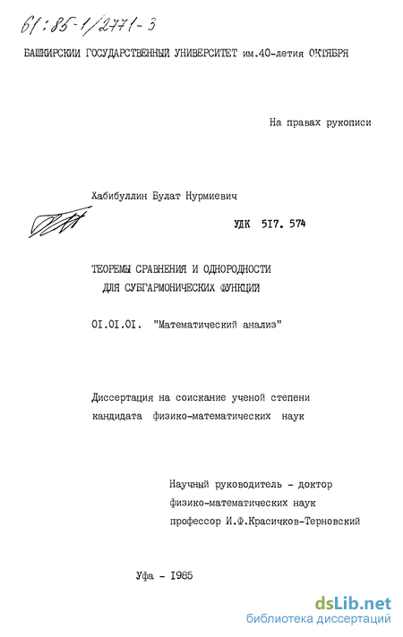 5 Применение теорем сравнения, к субгармоническим функциям 77