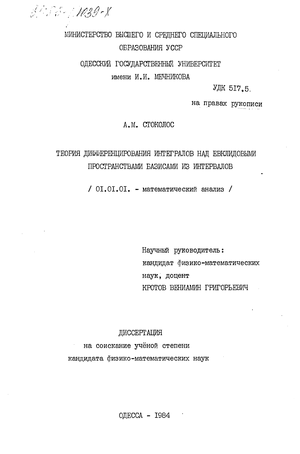 Похожие диссертации на Теория дифференцирования интегралов над евклидовыми пространствами базисами из интервалов