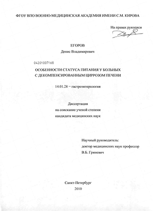 Поражения печени любой этиологии (вирусные, медикаментозные, алкогольные, токсические), особенно на стадии цирроза, приводят к печеночной недостаточности (Маевская М.В., 2006; Павлов Ч.С., 2007), что ассоциируется с глубоким нарушением обмена основных питательных веществ в организме и развитием трофологической недостаточности (Костюченко А.Л. и др., 2001; Радченко В.Г. и др., 2005).