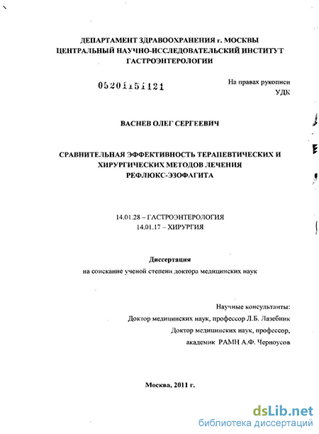выраженной при приеме ИПП, а гастрин обладая трофическим эффектом, стимулирует рост клеток разного типа эпителия, включая эпителий желудка, поджелудочной железы, толстой кишки (GuoY.S., 2000; McWilliams D.F., 1998; Miyake А., 1994). На фоне приема ИПП у больных отмечается прогрессирование остеопороза, у пожилых больных повышается риск перелома шейки бедра. По данным FDA — U.S. Food and Drug Administration от 25.05.2010г: "эпидемиологические исследования указывают на достоверное увеличение риска переломов костей при приёме ИПП в течение года и дольше или при больших дозах препаратов в более короткие сроки". Исходя из этого, все чаще возникает потребность в альтернативных решениях проблемы. Как альтернатива медикаментозной терапии ГЭРБ рассматриваются антирефлюксные операции. Особенно широко хирургические вмешательства стали применяться для лечения осложненных форм ГЭРБ. Существуют данные по отдаленным результатам антирефлюксных операций у больных с пищеводом Барретта, свидетельствующие об эффективном предотвращении развития дисплазии тяжелой степени или аденокарциномы (Hofstetter W.L., 2001; Peters J.H., 1997; Souza R.F., 2002). Вместе с тем, операция требует широкого доступа, адекватного анестезиологического обеспечения и сопряжена с множеством рисков. С развитием малоинвазивных технологий интерес к антирефлюксной хирургии возник с новой силой. По данным ряда авторов, практически все осложнения операций и рецидивы заболевания связаны с ошибками на диагностическом этапе или погрешностями техники выполнения операции (Bais J.E., 2000; Аллахвердян А.С., 2005). С момента появления лапароскопической хирургии по сей день ведутся дискуссии о возможности и рациональности выполнения всех хирургических вмешательств с использованием лапароскопической техники. Современное отношение к малоинвазивным вмешательствам диктует необходимость расширения возможностей лапароскопической хирургии, в том числе и применение лапароскопических технологий в лечении ГЭРБ. Особую сложность представляет лечение больных РЭ на фоне укорочения пищевода. При этом существует мнение о невозможности выполнить адекватную мобилизацию кардиоэзофагеального перехода и сформировать циркулярную манжету лапароскопическим способом у больных с укорочением пищевода (Черноусов А.Ф. 2008). Таким образом, выбор эффективного способа фундопликации и техники выполнения, позволяющей избежать типичных послеоперационных осложнений, уточнение и обоснование показаний к антирефлюксным операциям остаются предметом дискуссии хирургов и гастроэнтерологов, в очередной раз подчеркивает актуальность данной проблемы.