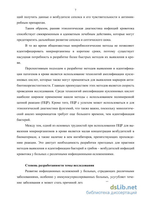 4 тетера. Установлено, что несвоевременное назначение адекватной противомикробной терапии значительно увеличивает риск летального исхода. Например, 48-часовая задержка лечения пациентов с эндокардитом увеличивает риск смерти в течение 14 дней в 5 раз [E.N. Vergis et al., 2001]. Поэтому необходимо своевременное этиотропное лечение, которое требует быстрой идентификации возбудителя и определения его чувствительности к антибиотикам. В то же время общеизвестные микробиологические методы не позволяют идентифицировать микроорганизмы в короткие сроки, поэтому существует насущная потребность в разработке более быстрых методов их выявления в крови.