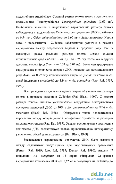 - Повторяющиеся последовательности ДНК в исследованиях таксономии и эволюции кровососущих комаров