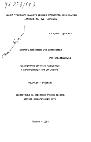 Шангин-Березовский Ген Никифорович. Биологически активные соединения в экспериментальном мутагенезе : ил РГБ ОД 71:85-3/64