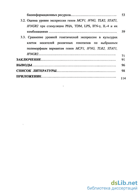 Таким образом, исследование экспрессии генов, несущих полиморфные варианты различных регуляторных молекул, которые обеспечивают начальные этапы развития иммунного ответа, таких как ген интерферона гамма (IFNG), ген субъединицы 2 рецептора интерферона гамма (IFNGR2), ген трансдуктора и активатора транскрипции (STAT1), ген Toll-like рецептора 2 (TLR2) и ген моноцитарного хемотаксического протеина (МСР1) в условиях воздействия бактериальных компонентов на клетки иммунной системы человека является перспективным.