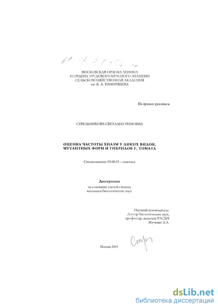 Новизна работы. Впервые проведено летальное исследование частоты и распределения хиазм \ представителей рода Lvcopersicon Tourn Дана сравнительная характеристика частоты и распределения хиазм у пяти дикорасп гцих втгдов томата При этом выявлены общие закономерности распределения хиазм по генот, изучено распределение хиазм по второй паре хромосом, показано своеобразие ооразования хиазм второй ялрышкообразушщей хромосомой томата