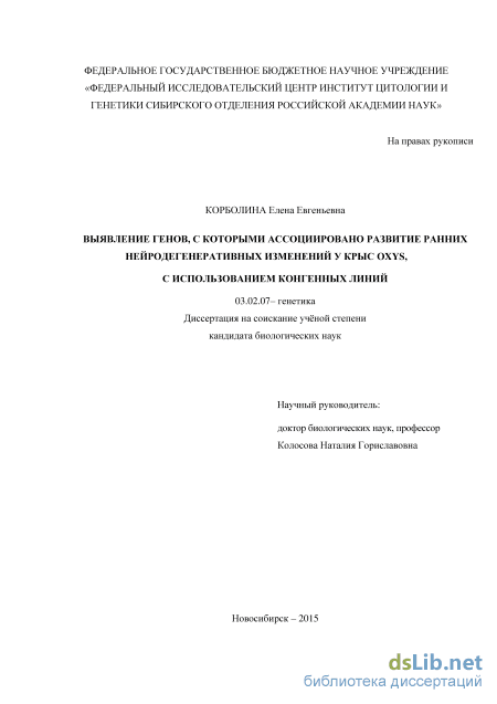 Настоящее исследование выполнено на уникальной генетической модели - линии преждевременно стареющих крыс OXYS. Принципиально важно, что при создании линии отбор проводился по одному признаку - ранней спонтанной катаракте, развитие которой только в первых пяти поколениях провоцировали обогащенной галактозой диетой. Сцепленно с катарактой животные унаследовали комплекс признаков преждевременного старения, в том числе раннее развитие ретинопатии и ускоренное старение мозга. Комплексное проявление признаков старения у крыс OXYS уже в молодом возрасте предполагает общие молекулярно-генетические основы их развития, механизмы которых остаются неясными. Патогенез нейродегенеративных заболеваний тесно связан с нарушениями энергетического гомеостаза (см. главу 1 «Обзор литературы»). С середины 90-х годов прошлого века нарастающие с возрастом дисфункции митохондрий рассматриваются как одна из возможных причин преждевременного старения крыс OXYS [Salganik et ah, 1994; Shabalina et ah, 1995], однако вопрос о причинно-следственной связи между нарушением энергетического метаболизма и «запуском» процессов преждевременного старения на момент постановки задач настоящего исследования оставался открытым. Для ответа на него на первом этапе работы нами была проведена оценка возможной связи ускоренного старения мозга крыс OXYS с нарушениями энергетического метаболизма. Сравнение его состояния в мозге крыс OXYS и Wistar (контроль) было проведено методами Р ЯМР-спектроскопии. Вторая часть исследования была посвящена поиску на первой хромосоме локусов, ассоциированных с развитием у крыс OXYS ряда признаков преждевременного старения (поведенческих, ранней катаракты и ретинопатии) методом QTL-анализа и доказательству влияния выявленных QTL-локусов на развитие катаракты и ретинопатии. С этой целью для каждого локуса были сконструированы конгенные линии крыс (на основе генома крыс WAG, контрастных по совокупности исследуемых фенотипических признаков по отношению у крысам OXYS). Была проведена характеристика фенотипа конгенных животных в сравнении с крысами родительских линий OXYS и WAG, в том числе по заболеваемости катарактой и ретинопатией. Третья часть исследования была посвящена картированию локусов, перенесенных в конгенные линии от крыс родительской линии OXYS, а также анализу изменений транскриптома сетчатки конгенных животных в сравнении с крысами OXYS на доклинической стадии развития ретинопатии при помощи методов массового параллельного секвенирования (RNA-seq).