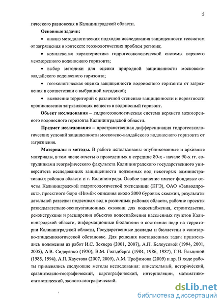 Материалы и методы. В работе использованы опубликованные и архивные материалы, в том числе отчеты о проведенных в середине 80-х - начале 90-х гг. сотрудниками географического факультета Калининградского государственного университета исследованиях защищенности подземных вод некоторых административных районов области и г. Калининграда. Особое значение имеют фондовые отчеты Калининградской гидрогеологической экспедиции (КГЭ), ОАО «Запводпроект», проектного бюро «Нимб»: описания около 2000 буровых скважин, результаты детальной разведки подземных вод в различных районах области, рабочие проекты разведывательно-эксплуатационных скважин для водоснабжения, строительства, реконструкции и расширения объектов водоснабжения населенных пунктов Калининградской области, информационные бюллетени о состоянии недр на территории Калининградской области, Государственные доклады и бюллетени о санитарно-эпидемиологической обстановке. Для решения поставленных задач привлекались положения из работ И.С. Зекцера (2001, 2007), А.П. Белоусовой (1994, 2001, 2005), А.В. Сидоренко (1970), В.М. Гольдберга (1984, 1986, 1987), Г.Н. Ельциной (1985, 1994), А.П. Хаустова (2007, 2009), А.М. Трофимова (2009) и др. В ходе работы применялись следующие методы исследования: описательный, исторический, сравнительно-географический, картографический, интерполяции, математико-статистический, эколого-географический.