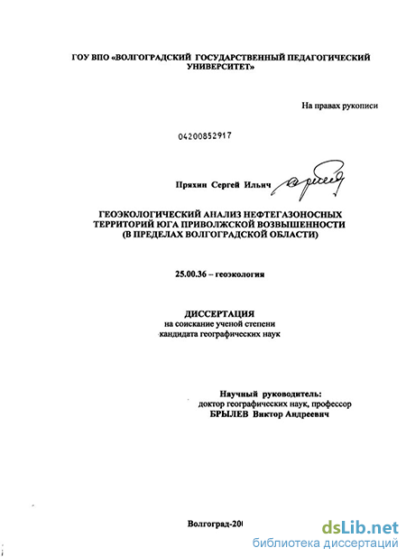 Фактический материал и личный вклад автора: научные исследования и результаты полевых наблюдений соискателя (1990-2007); литературные источники, статистические и справочные данные, картографическая продукция, космические снимки; фондовые материалы научно-исследовательских, производственных и экологических организаций: Комитета охраны природы администрации Волгоградской области, ОАО «ВолгоградНИПИморнефть», Волгоградского городского управления аналитического и оперативного контроля качества окружающей природной среды. Автор принимал непосредственное участие в сборе, анализе и обработке исходной информации и проведении экспериментальных наблюдений (анализов проб почвы, воды и воздуха); постановке проблемы, задач исследования, защищаемых положений и интерпретации результатов исследований; в выработке рекомендаций.