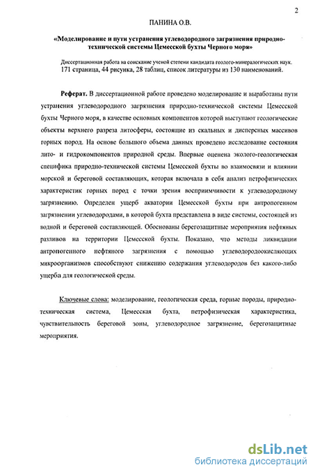 4. Оценка эколого-геологических особенностей природно-технической системы Цемесской бухты при углеводородных загрязнениях.