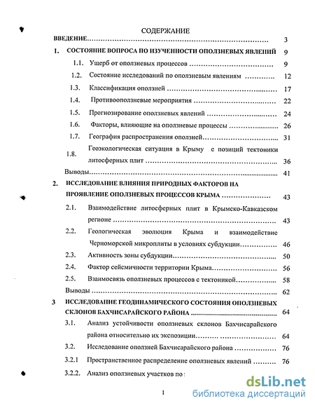 Научные положения, выносимые на защиту: на основе комплексного анализа причин проявления оползневых процессов в Крыму установлены закономерности перехода склонов в новое устойчивое состояние равновесия за счет факторов, действующих при пододвигании Черноморской микроплиты под Крымский полуостров; метод прогноза оползневых явлений, базирующийся на основе геодинамического районирования, позволяет выявлять границы оползней по принципу «от общего к частному», оценивать напряженно-деформированное состояние массива горных пород Крыма, а также применить классификацию зон по категориям их опасности для территории Бахчисарайского района Крыма; экологическая безопасность природных и инженерных объектов, расположенных в зоне влияния границ и узлов пересечения геодинамически активных блоков, а также эффективное применение мер по их охране оцениваются в зависимости от ориентировки оползневых склонов к направлению движения Черноморской микроплиты.