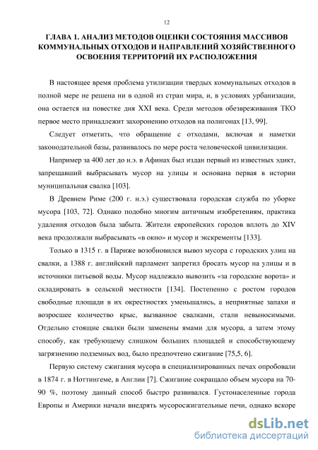 ГЛАВА 1. Анализ методов оценки состояния массивов коммунальных отходов и направлений хозяйственного освоения территорий их расположения 12