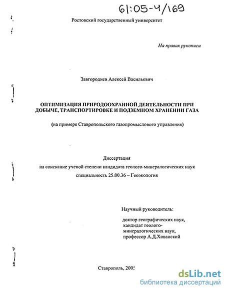 Фактический материал. В основу диссертационной работы положены материалы, полученные автором в процессе создания системы управления окружающей средой Ставропольского газопромыслового управления и ООО «Кавказтрансгаз», результаты оценки воздействия на геологическую среду Северо-Ставропольского подземного хранилища газа и других предприятий газовой отрасли, данные производственно-экологичекого мониторинга за период 1997-2004 гг.