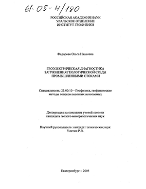 В диссертации рассматривается опытно-методическая работа по изучению загрязнения геологической среды керосином, выполненная в 2002 году в районе г. Каменск-Уральский (Свердловская обл.) По результатам комплексных геоэлектрических работ удалось оконтурить площадное загрязнение и наметить точки для заверочного бурения. Первый опыт изучения загрязнения природной среды углеводородами показал перспективность применения предлагаемого комплекса геоэлектрических методик для выявления загрязнения веществами, повышающими удельное сопротивление горной породы.