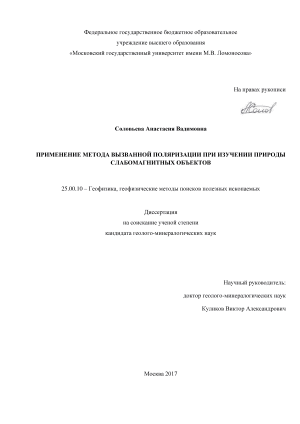 В результате опытно-методических работ на многочисленных магнитных аномалиях, выполненных на территории Калужской области, автором с соавторами было доказано, что магнетитсодержащие глины, залегающие на дне погребенных слабопроточных бассейнов, характеризуются высокочастотными аномалиями вызванной поляризации. Автором с соавторами была предложена методика комплексных геофизических исследований, при которой на первом этапе проводятся измерения методом СВП, на основании которых выделяются поляризующиеся объекты с малыми значениями временного параметра . Если выделенные по результатам СВП тела отвечают аномальному магнитному полю, то такие аномалии можно относить к разряду приповерхностных и малоперспективных. Данная методика работ существенно поможет сократить объемы геофизических исследований, направленных на выявление глубоко залегающих объектов и последующего бурения.