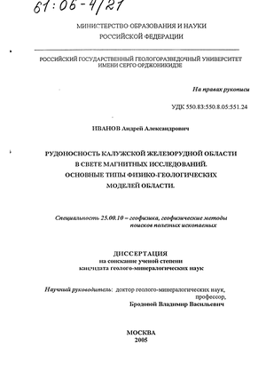 Для Калужской рудоносной области разработан иерархический ряд физико-геологических моделей рудных объектов различного класса. Определены основные поисковые признаки. Предложены комплекс и методика геофизических работ, основные элементы интерпретации материалов для данного района.