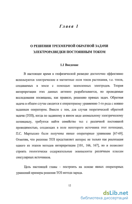ГЛАВА 1. О решении трехмерной обратной задачи электроразведки постоянным током 12