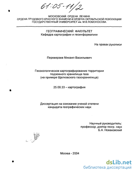Целью диссертационной работы является разработка методики картографической оценки геоэкологического состояния территории подземного хранилища газа с использованием современных геоинформационных технологий.