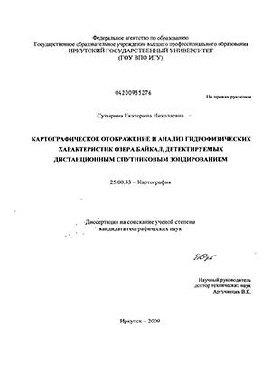 Научная новизна: Данная диссертационная работа представляет научные и практические результаты построения автоматизированной системы тематического дешифрирования гидрофизических характеристик поверхностного слоя оз. Байкал по спутниковым данным для картографического отображения гидрофизических показателей. Новые научные результаты диссертационного исследования состоят в следующем: • разработан региональный алгоритм тематического дешифрирования толщины ледяного покрова на оз. Байкал по данным AVHRR, основанный на совместном анализе данных видимого и РПС диапазонов; • разработаны региональные алгоритмы тематического дешифрирования температуры поверхности оз. Байкал по данным AVIIRR, основанные на совместном анализе данных види^югo и ИК диапазонов в дневное время суток или на применении двухканальных нелинейных зависимостей - в ночное время суток; • разработана компьютерная технология автоматизированного создания тематических картографических изображений оз. Байкал по данным AVHRR; • разработана серия тематических карт температуры и ледовой обстановки на оз. Байкал.