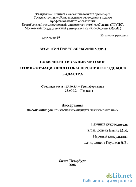Апробация работы. Материалы исследований и основные положения работы докладывались на семинаре Санкт-Петербургского отделения Русского географического общества (январь 2006 г.), международной научно-практической интернет-конференции «Ресурсосберегающие технологии в транспортном строительстве и путевом хозяйстве железных дорог» (ПГУПС, ноябрь-декабрь 2005 г.), 12-й международной научно-технической конференции "Геофорум-2007" (Львов-Яворов, апрель 2007 г), 64-ой и 66-ой научно-технических конференциях студентов, аспирантов и молодых ученых (ПГУПС, апрель 2004 и 2006 гг.) и на заседаниях кафедр «Инженерная геодезия» ПГУПС и «Геодезия, геоинформатика и навигация» МГУПС (МИИТ).