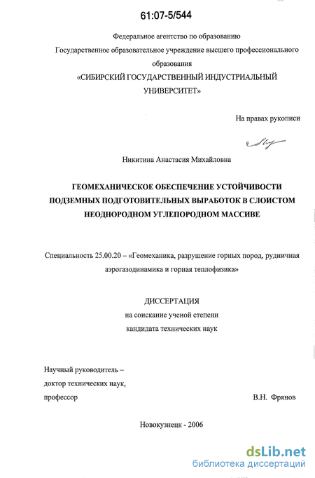 Реализация работы. Результаты работы, оформленные в виде методики расчета геомеханических параметров слоистого неоднородного углепородного массива в окрестности подготовительных горных выработок были представлены на конкурс на лучший экспонат, проводимый в рамках XIII Международной выставки «Уголь России и майнинг 2006» и награждены серебряной медалью, а так же переданы участникам выставки для применения на шахтах Кузбасса. Научные результаты и практические рекомендации использованы в отделе технологии крепления выработок ОАО ОУК «Южкузбассуголь», а так же в учебном процессе ГОУ ВПО Сибирского государственного индустриального уни-