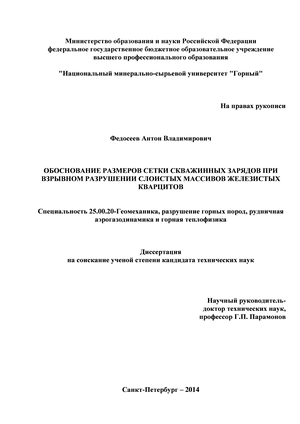 Настоящая диссертационная работа является законченной научно-квалификационной работой, в которой представлено решение актуальной для горнодобывающих предприятий задачи по обоснованию сетки взрывных скважин при взрывном разрушении железистых кварцитов на основе учета угла падения и направления простирания слоистости.