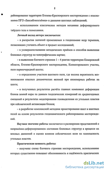 - разработаны рекомендации по проектированию шахт и шахтных полей на основе учёта результатов геодинамического районирования, повышающие эффективность и безопасность освоения угольных месторождений.